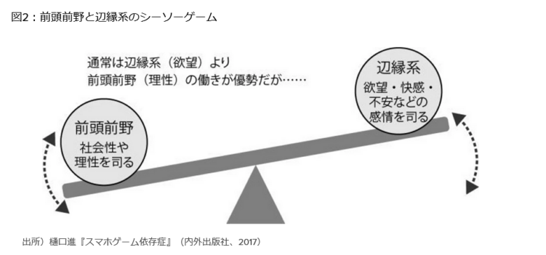 常日頃からゲームをしていると、本能や欲望を優位にする大脳辺縁系が働きやすくなるので
